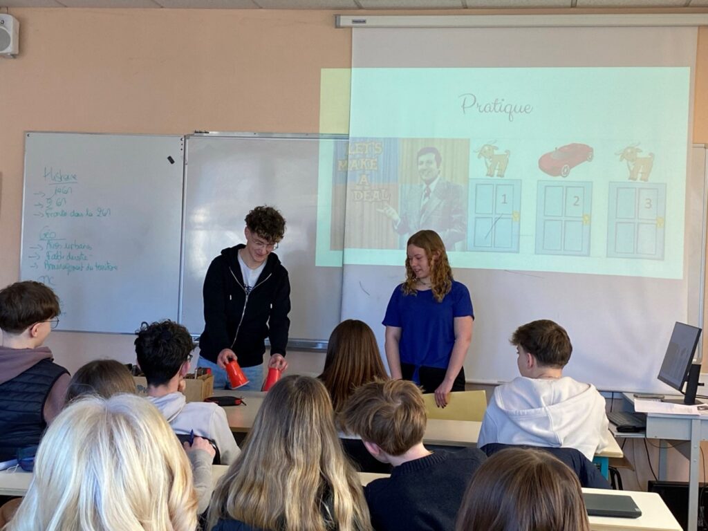 Système 1 vs Système 2 (Emilie, Evan, Noah et Lola) : Grâce au jeu des gobelets, le groupe a illustré le duel entre pensée intuitive et pensée logique.